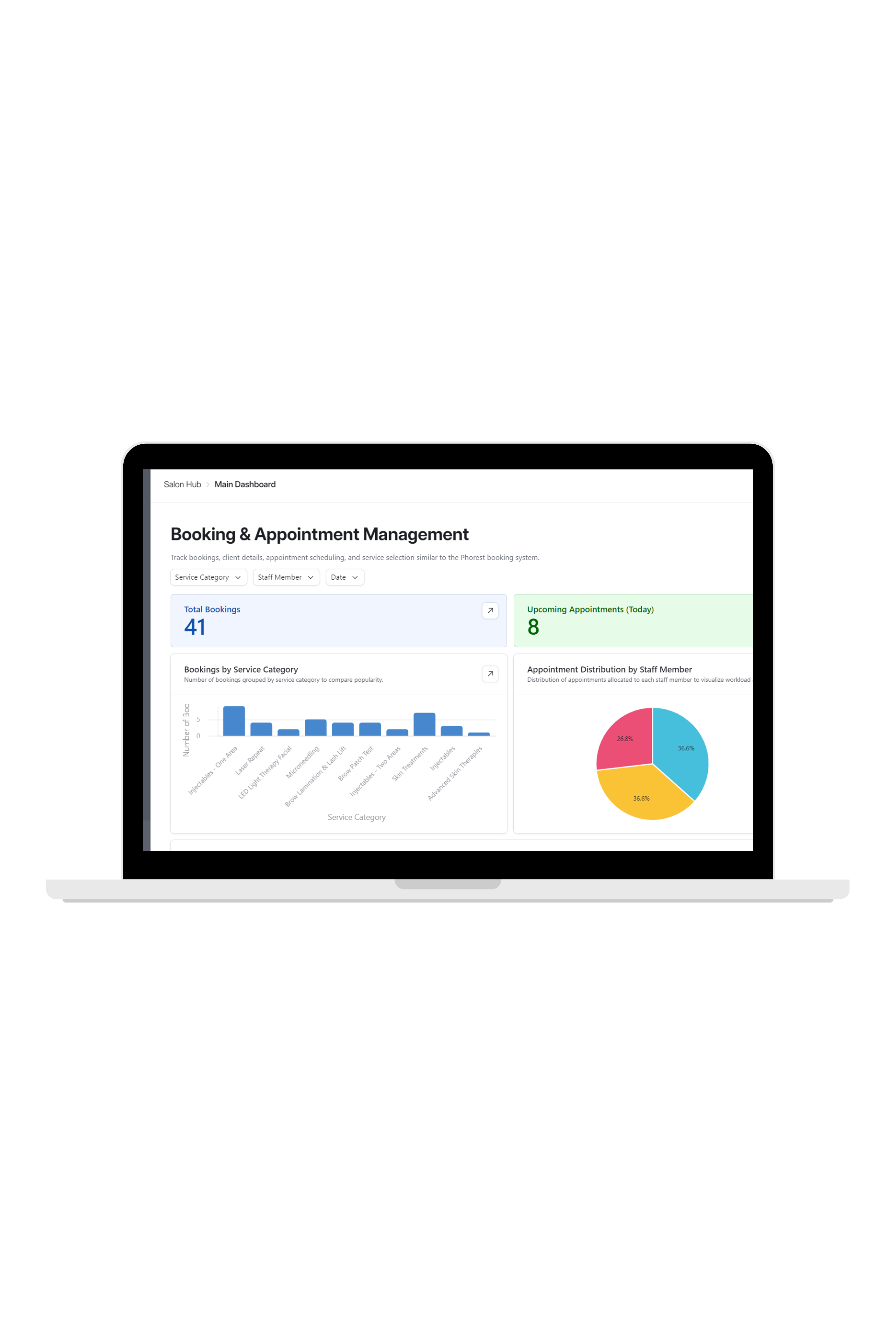 Your booking system, if you choose to include it, is designed around your services, staff structure, availability and workflow.